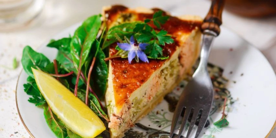 Киш с лососем и брокколи: румяный, нежный, с хрустящим дном