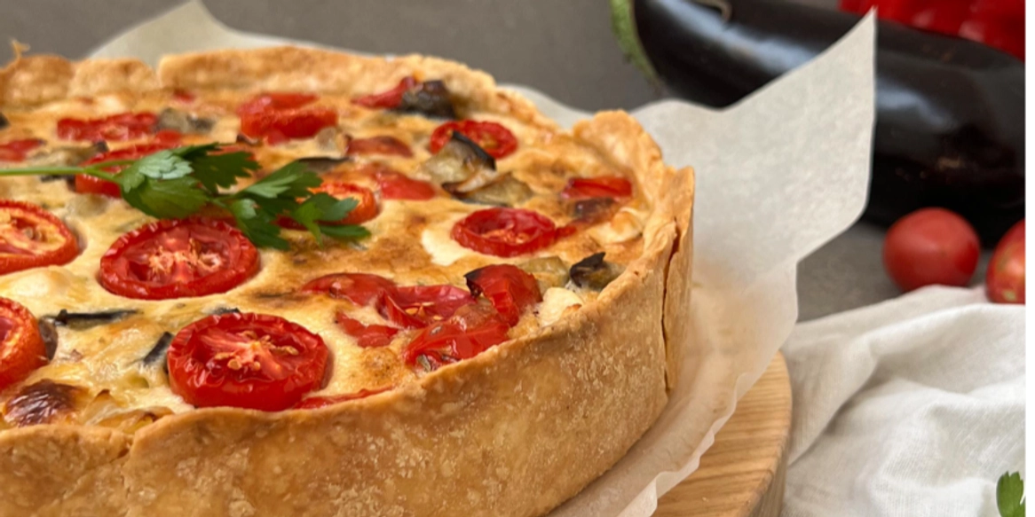 Лучшее из сезонных овощей: Рецепт киша с куриным филе, баклажанами и болгарским перцем