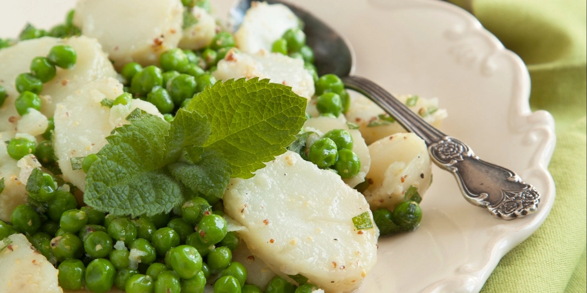 Салат из картофеля, горошка и мяты: со сливочно-йогуртовой заправкой