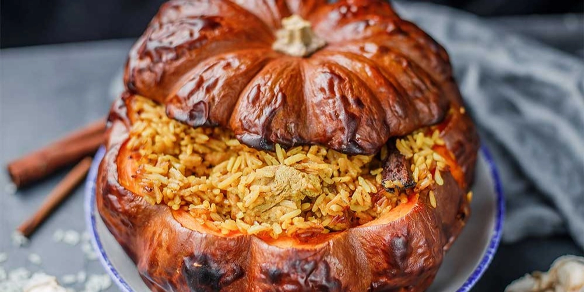 Осенний плов в тыкве: рецепт со свининой в красивой подаче