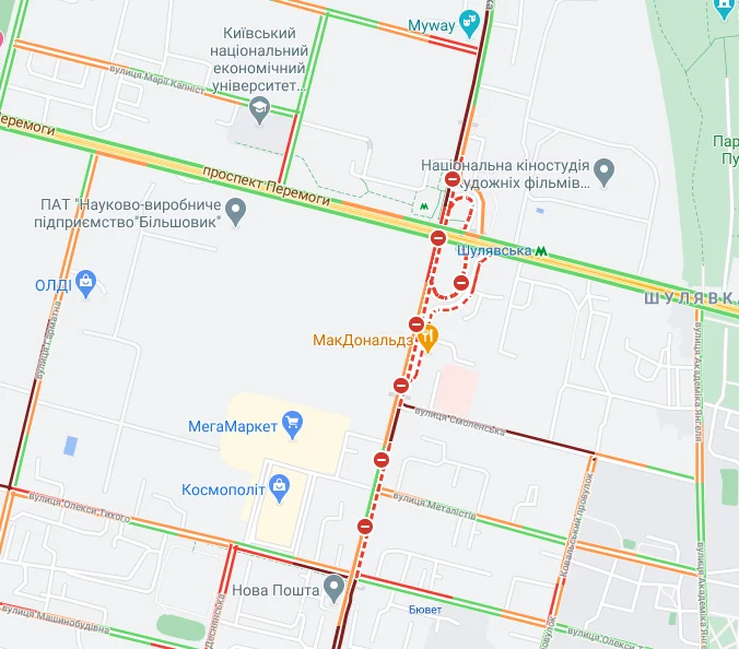 Обновлено в 18:22. Движение по Шулявскому путепроводу возобновили — по одной полосе в каждую сторону.