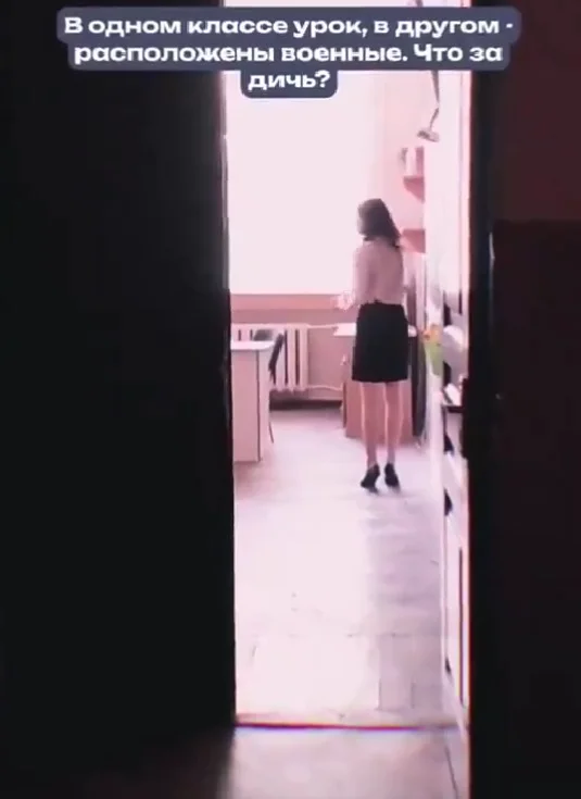 «Вот так базируются военные в Курчатовской школе. В одном классе учат деток, в другом военные бухают», — говорится в комментарии к обнародованным кадрам.