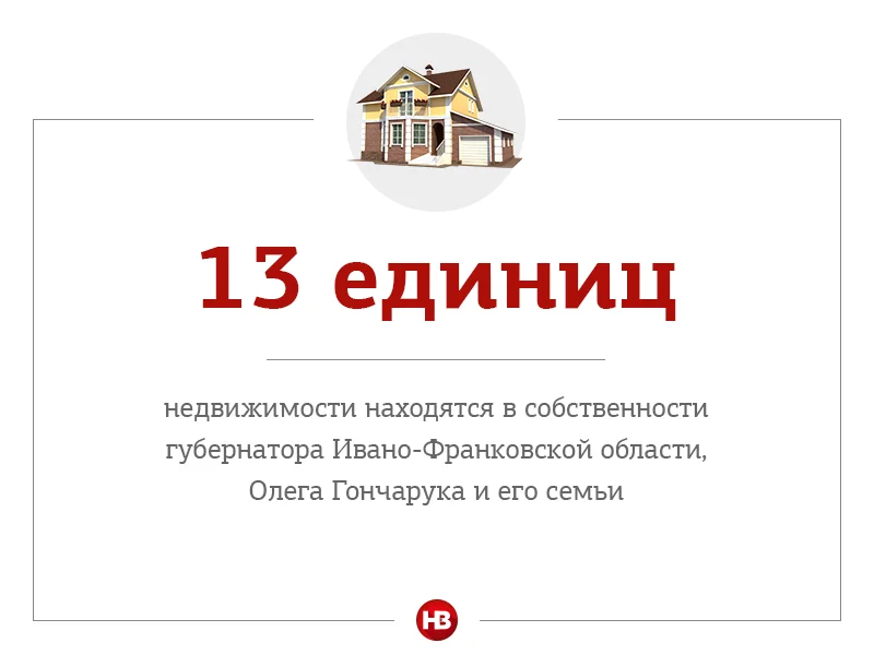 Губернатор Ивано-Франковской области Олег Гончарук задекларировал 1 млн 196 тыс. 523 грн., зарплата чиновника составила более 100 тыс. грн. Более миллиона гривен он получил от продажи имущества. У Гончарука – три земельных участка, два дома, две квартиры и два гаража, есть одно авто. На счетах в банке средств нет. В документе Гончарук указал жену, у которой также три квартиры, гараж и две машины. Сумма прошлогоднего дохода членов семьи также составила более 1 млн 069 грн. В биографии Гончарука, которая доступна на открытых ресурсах в интернете, также значится, что у него есть взрослая дочь.