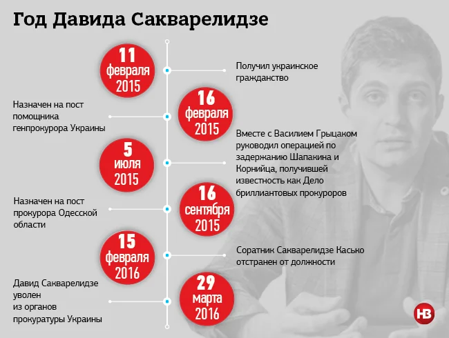 Сегодня, перед своей собственной отставкой, генпрокурор Виктор Шокин уволил своего заместителя и прокурора Одесской области Давида Сакварелидзе. С требованием об увольнении в Генпрокуратуру обратились депутаты от Одесской области, Дмитрий Голубов, Евгений Дейдей, Сергей Кивалов, Александр Урбанский, Александр Пресман, Василий Гуляев, Павел Унгурян, Виталий Барвиненко.