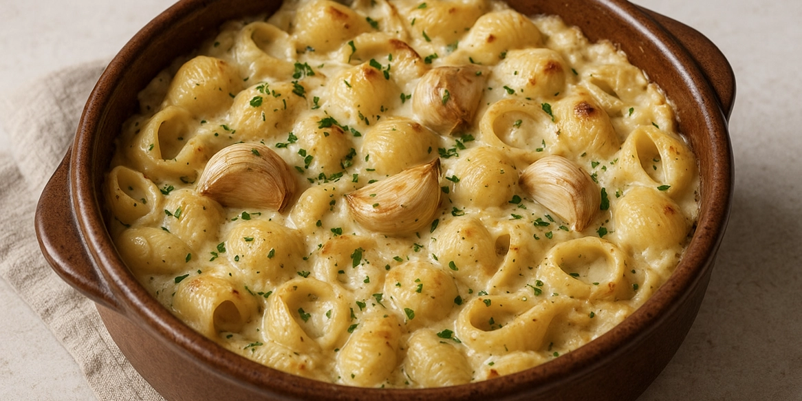 Паста з печеним часником в одному посуді