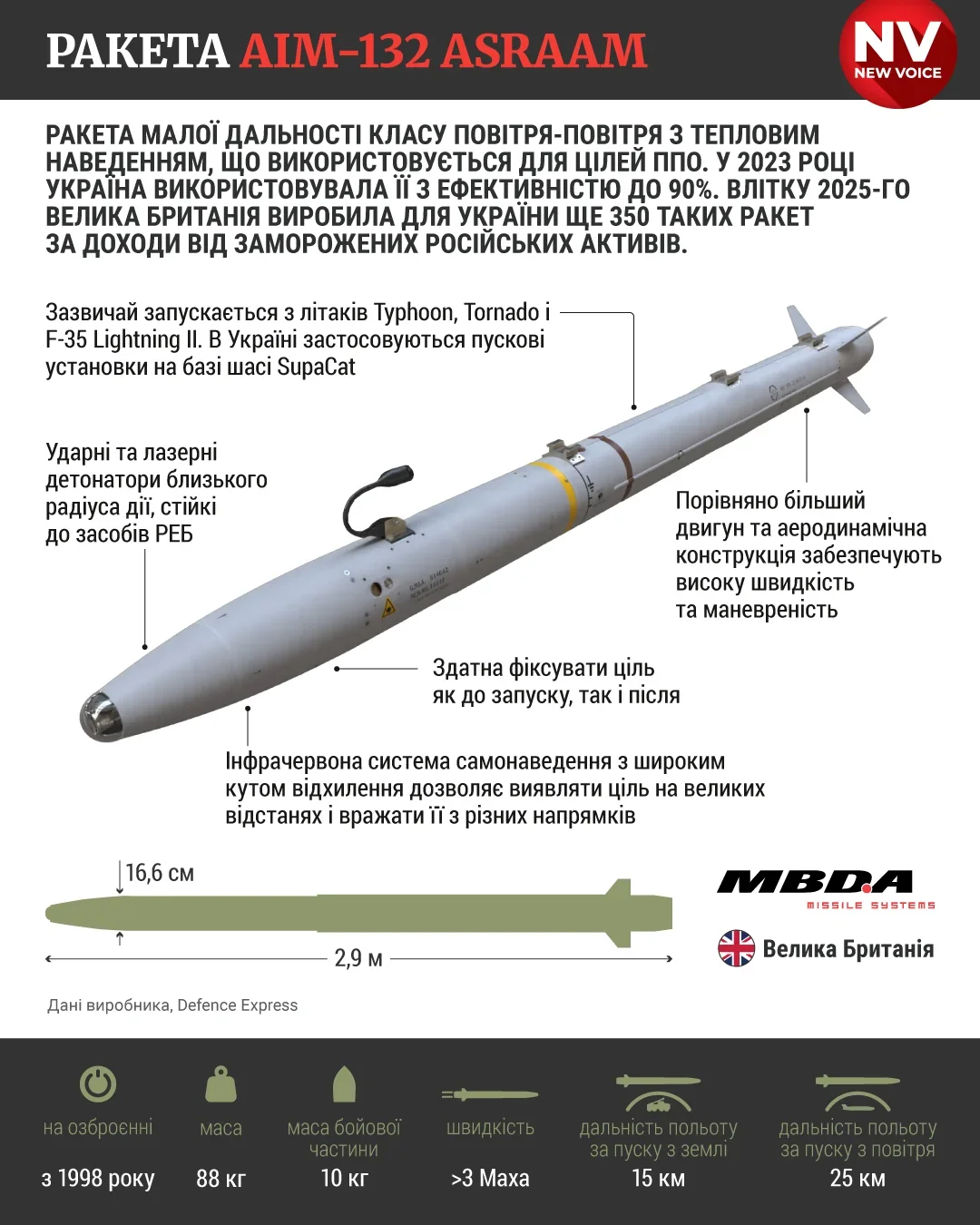 Раніше глава британського уряду Кір Стармер повідомив, що Велика Британія поставить Україні 350 ракет ASRAAM для посилення протиповітряної оборони за рахунок відсотків від заморожених російських активів.