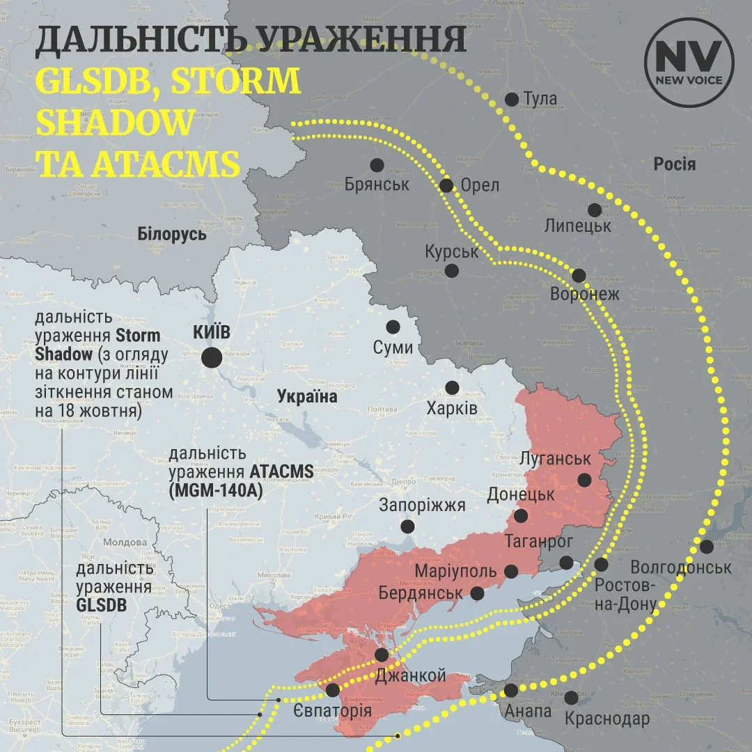 Фактично це «схрещення» крилатої ракети та високоточної керованої авіабомби з максимальною відстанню ураження до 150 кілометрів. Це дозволить ЗСУ тримати під прицілом радіус приблизно до Кримського перешийка та в глибині Донецької й Луганської областей.