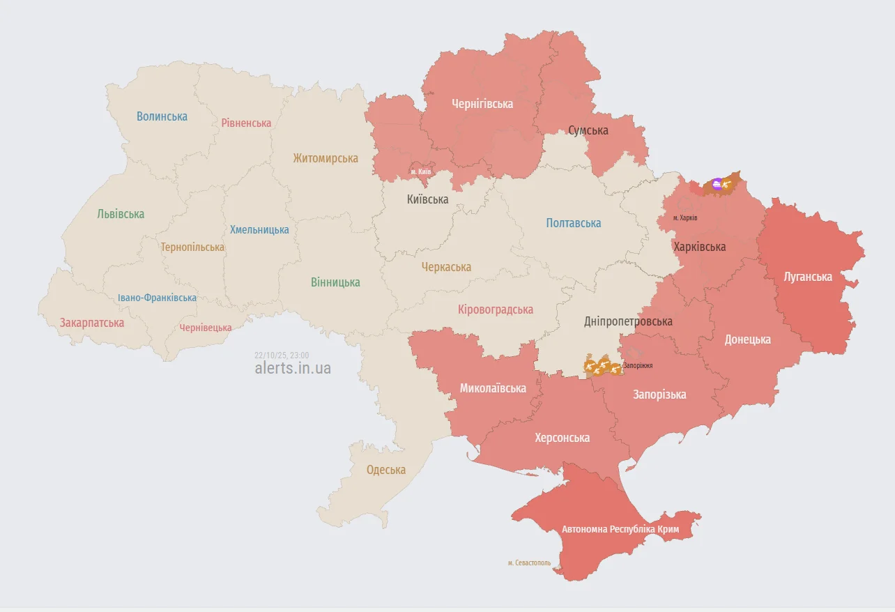 Країна-агресор Росія ввечері в середу, 22 жовтня, атакує Україну дронами.