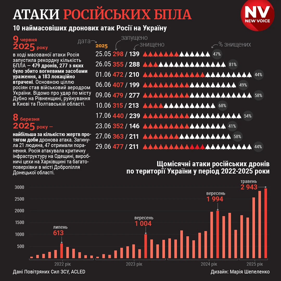Російські окупанти здатні запускати до 500 дронів по Україні, але не мають можливості робити такі запуски щодня.