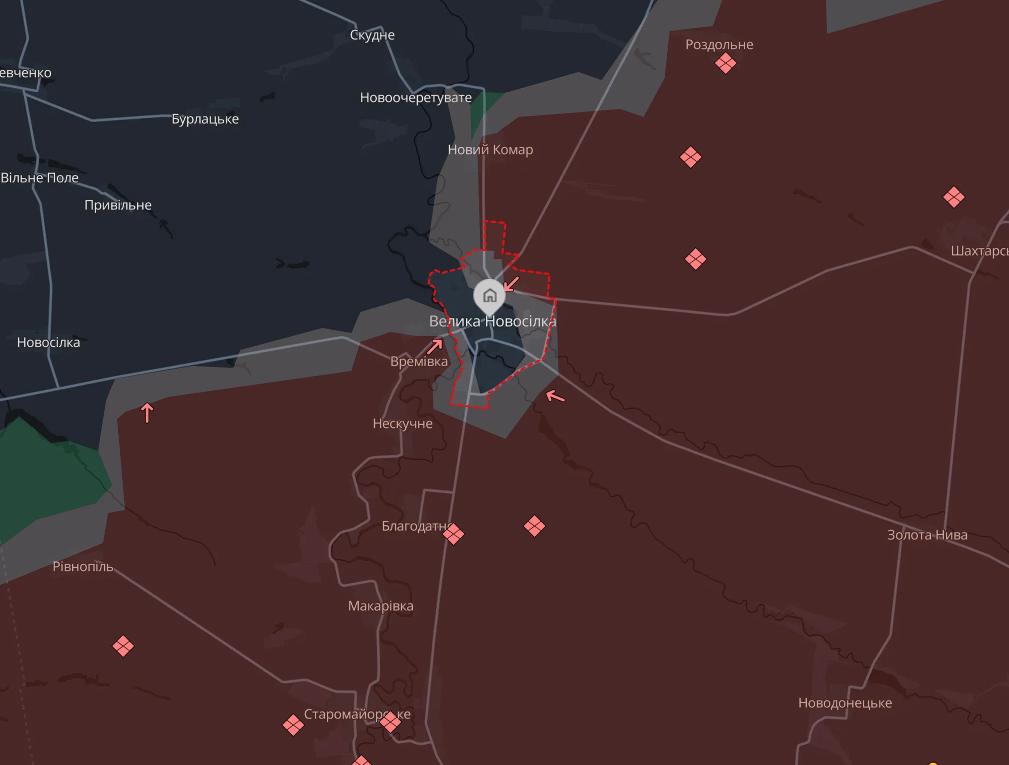 За даними британської розвідки, окупанти просунулися на північ із метою взяти під контроль села Нескучне та Времівка, розташовані західніше від Великої Новосілки.
