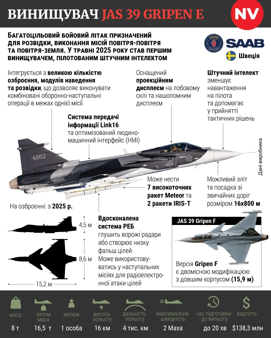 NV у своїй інфографіці розповідає, що відомо про винищувач Gripen серії E.