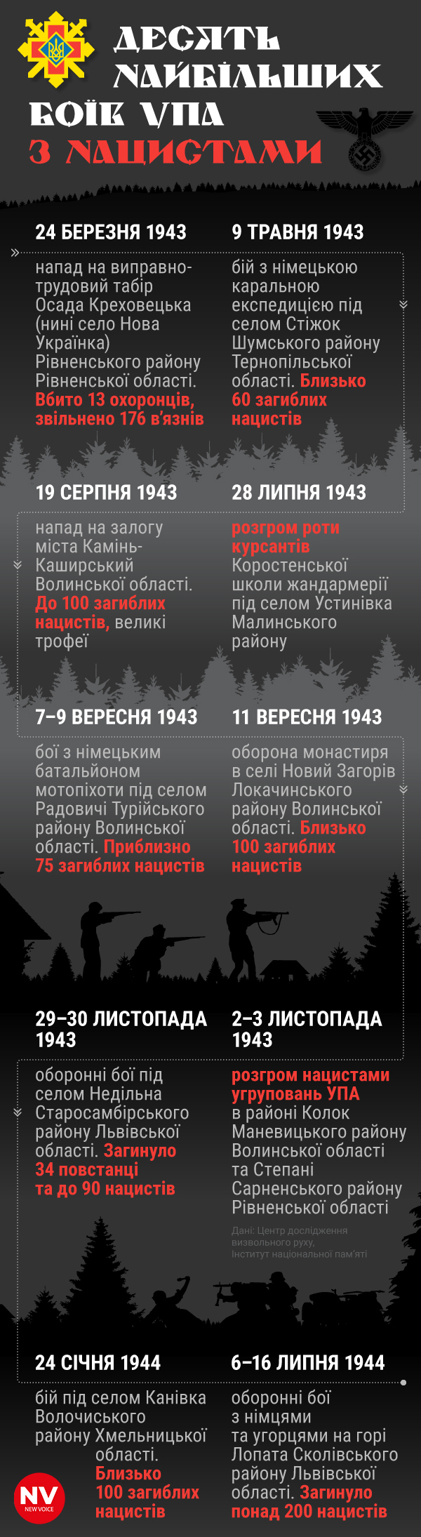 УПА діяла в Україні до вересня 1949 року, після чого була реорганізована в збройне підпілля, діяльність якого тривала до початку 1960 років. Протягом усього періоду німецької окупації українських територій УПА вела боротьбу проти військ гітлерівської Німеччини. Крім того, весь період свого існування Повстанська армія вважала своїм ворогом і СРСР — як державу, винну в масових політичних репресіях в Україні, організації Голодомору і депортаціях населення.