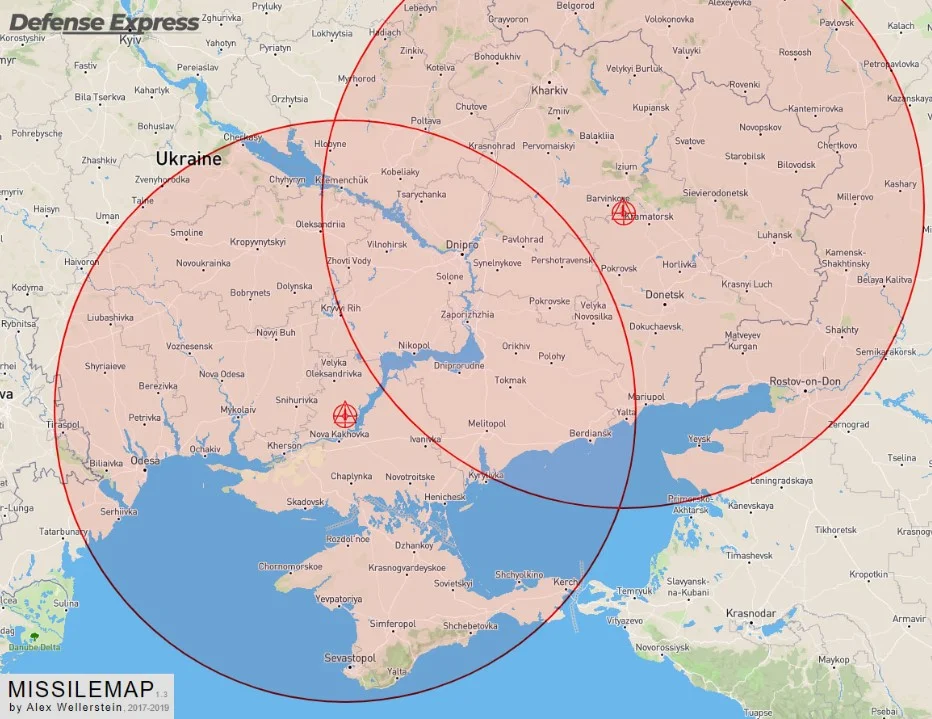 Тоді в зону ураження потрапить вся окупована територія України включно з усією площею захопленого росіянами Криму.