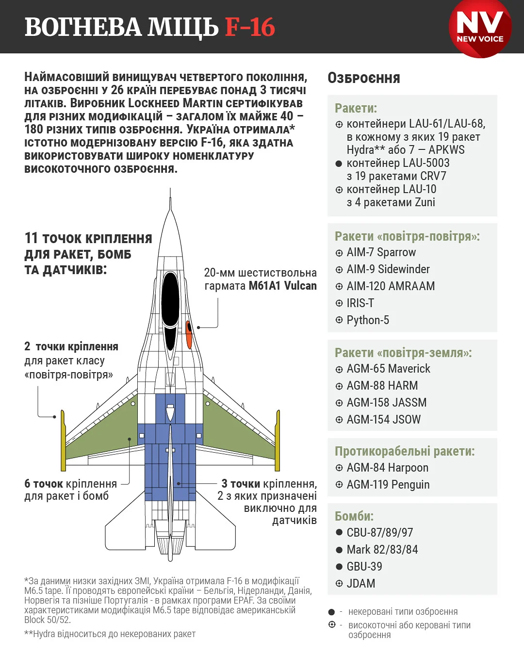 Президент США Джо Байден офіційно підтвердив, що його країна передасть Україні планерні бомби Joint Standoff Weapon (JSOW) для винищувачів F-16.