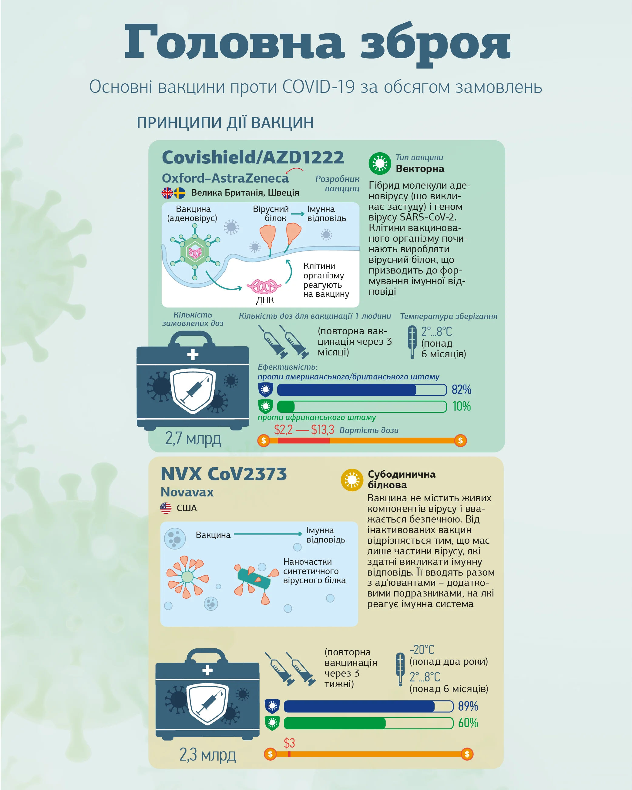Головна зброя. Все про різновиди вакцин від COVID-19 і принцип їх дії — інфографіка