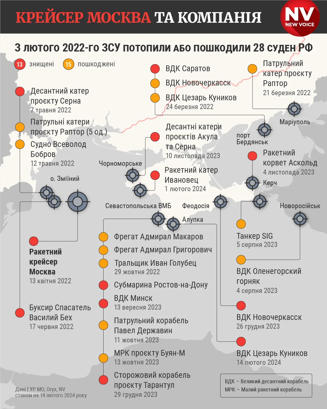 Имея ограниченные возможности собственного флота, Украина за почти два года развязанной Россией полномасштабной войны смогла уничтожить и повредить уже более 20 российских судов.
