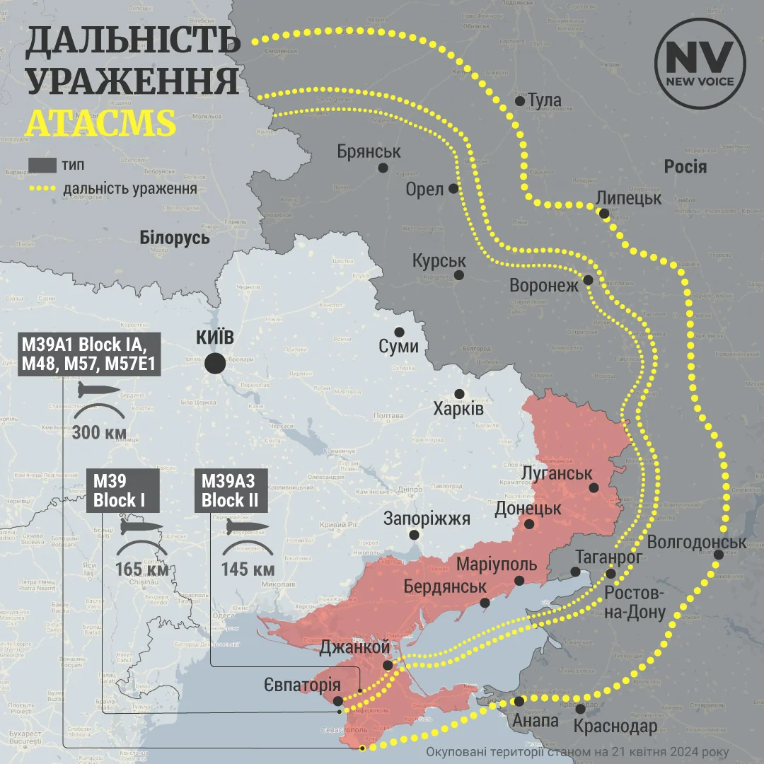 Только в апреле 2024 года Украина наконец получила от США долгожданные дальнобойные ракеты ATACMS, способные поражать цели на расстоянии до 300 км. Правда, Украина до сих пор не имеет разрешения наносить удары такими ракетами по целям в РФ.