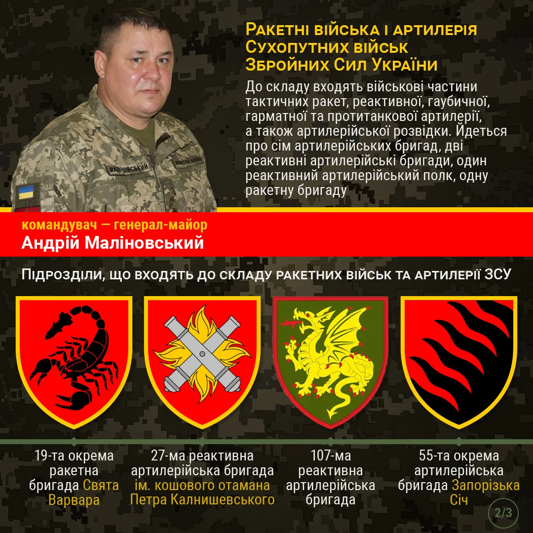 Командующий ракетных войск и артиллерии ВСУ — генерал-майор Андрей Малиновский, заместитель командующего Сухопутными войсками ВСУ.