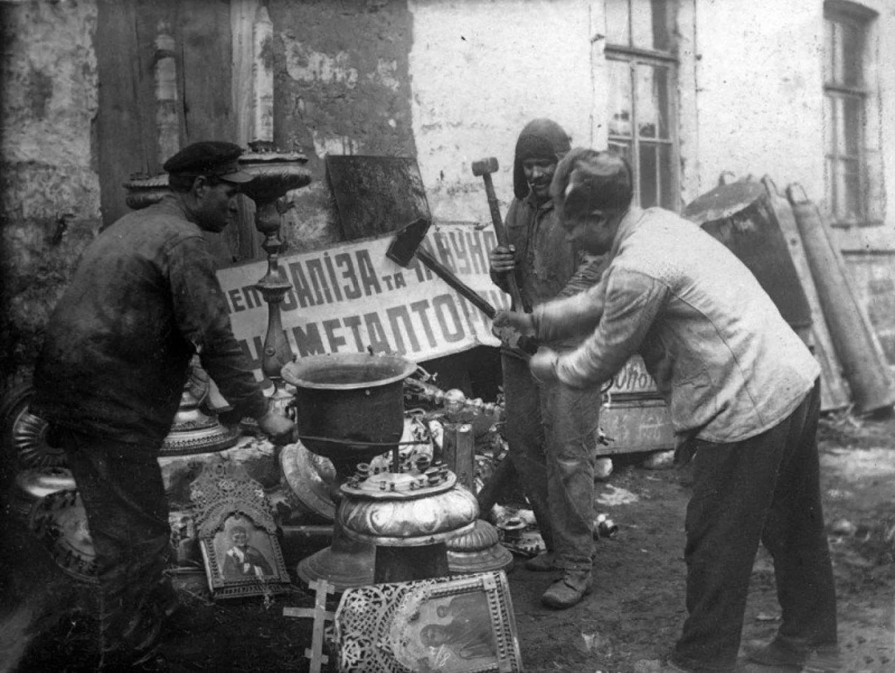 КРАСНАЯ ПЕРЕКОВКА: В конце 1920‑х трест Рудметаллторг открыл конторы по закупке металлолома у населения по всему СССР. Туда стекалась церковная утварь, которую отбирали у храмов большевики при согласии священников-обновленцев. На фото — пункт приема цветных металлов (вероятно, Харьков). Фото: DR