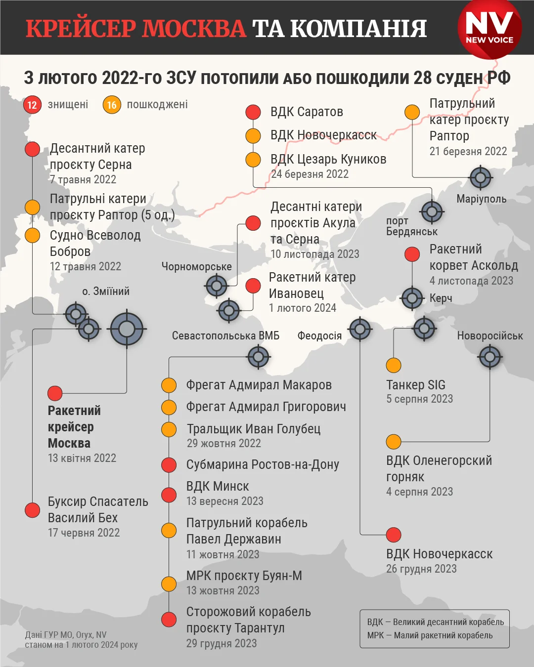 Имея ограниченные возможности собственного флота, Украина за почти два года развязанной Россией полномасштабной войны смогла уничтожить и повредить более 20 российских судов.