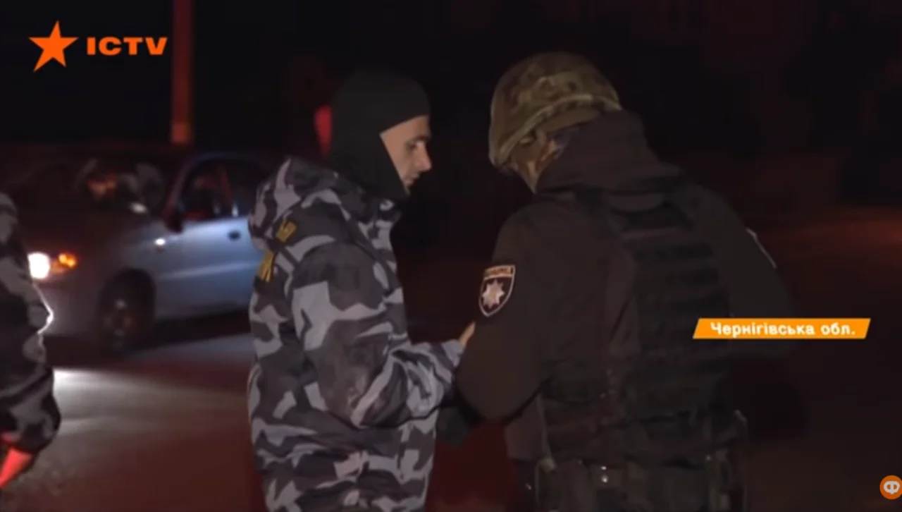 Полицейские патрулируют Ичню вместе с представителями Национальных дружин, 9 октября 2018 года / Кадр видео ICTV
