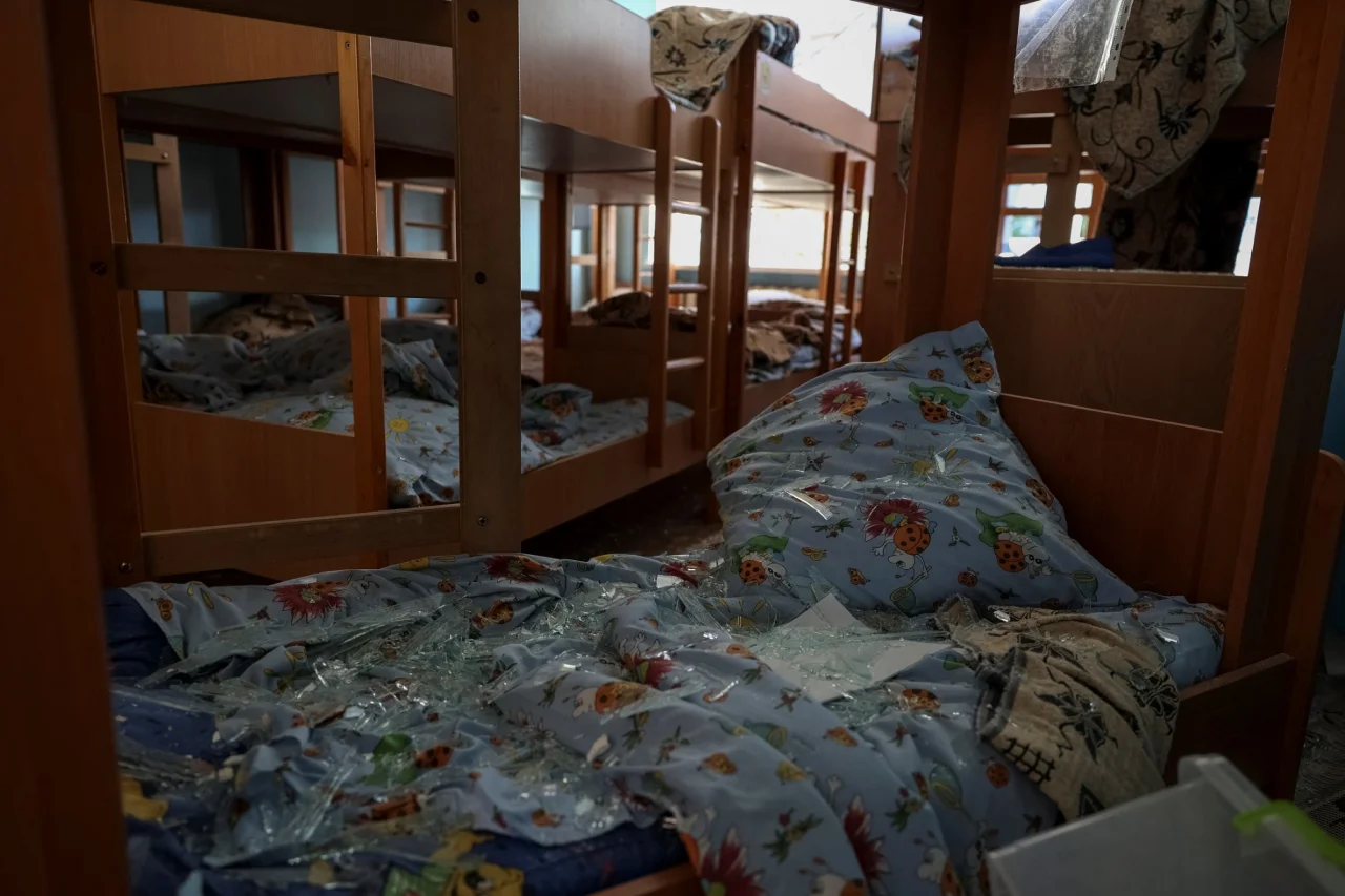 Фото сделано возле места, где российская ракета оставила огромную воронку во дворе детского сада, повредила его здание и близлежащие жилые дома.