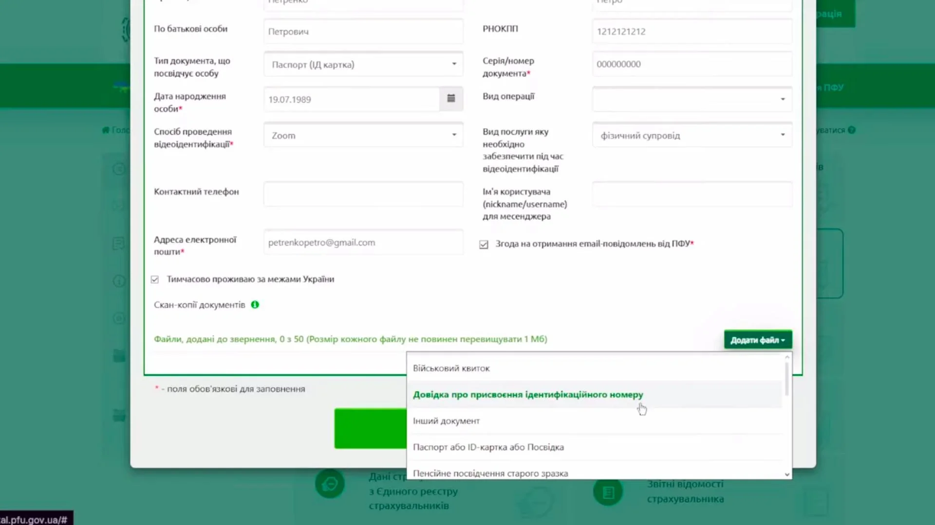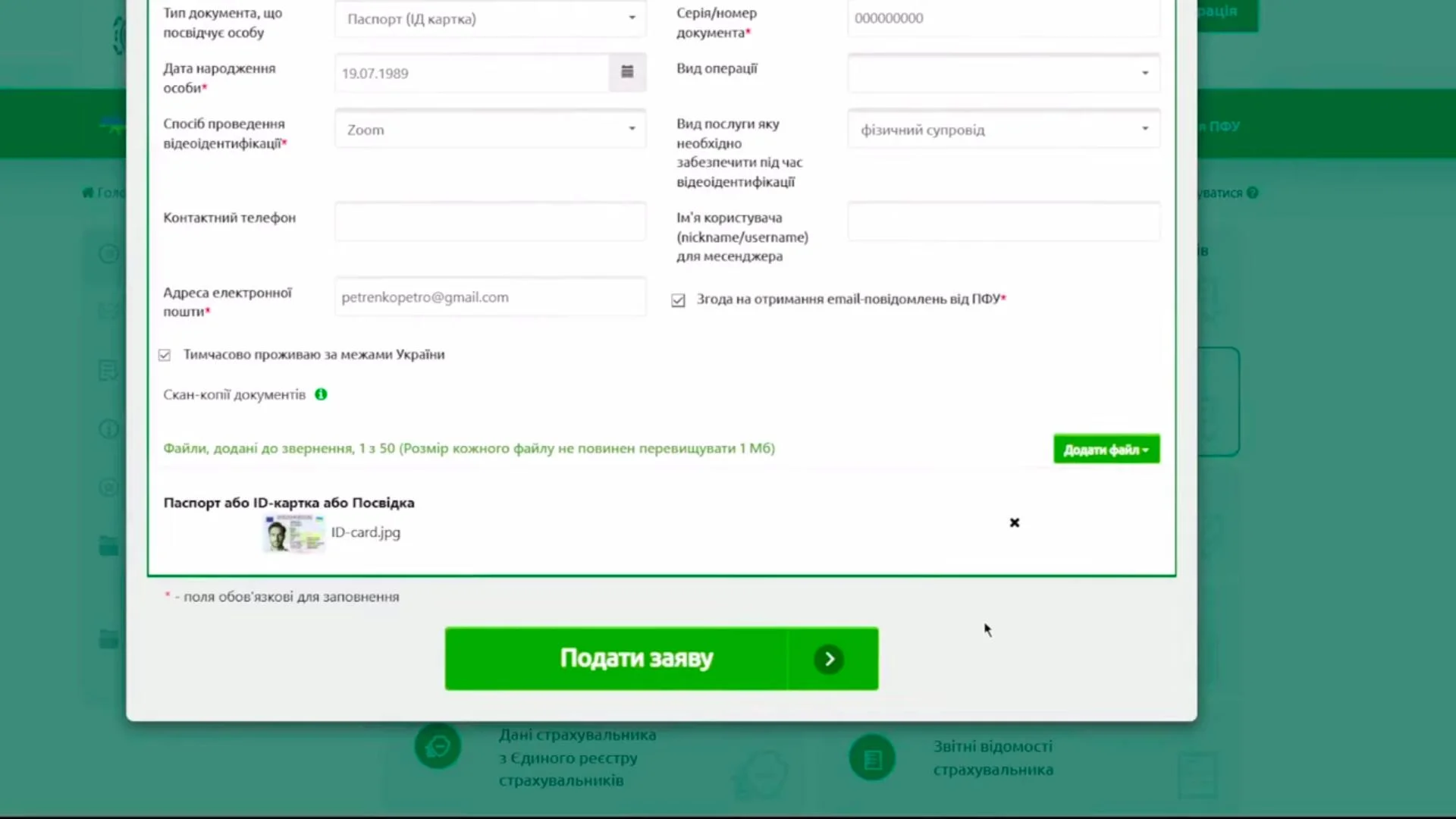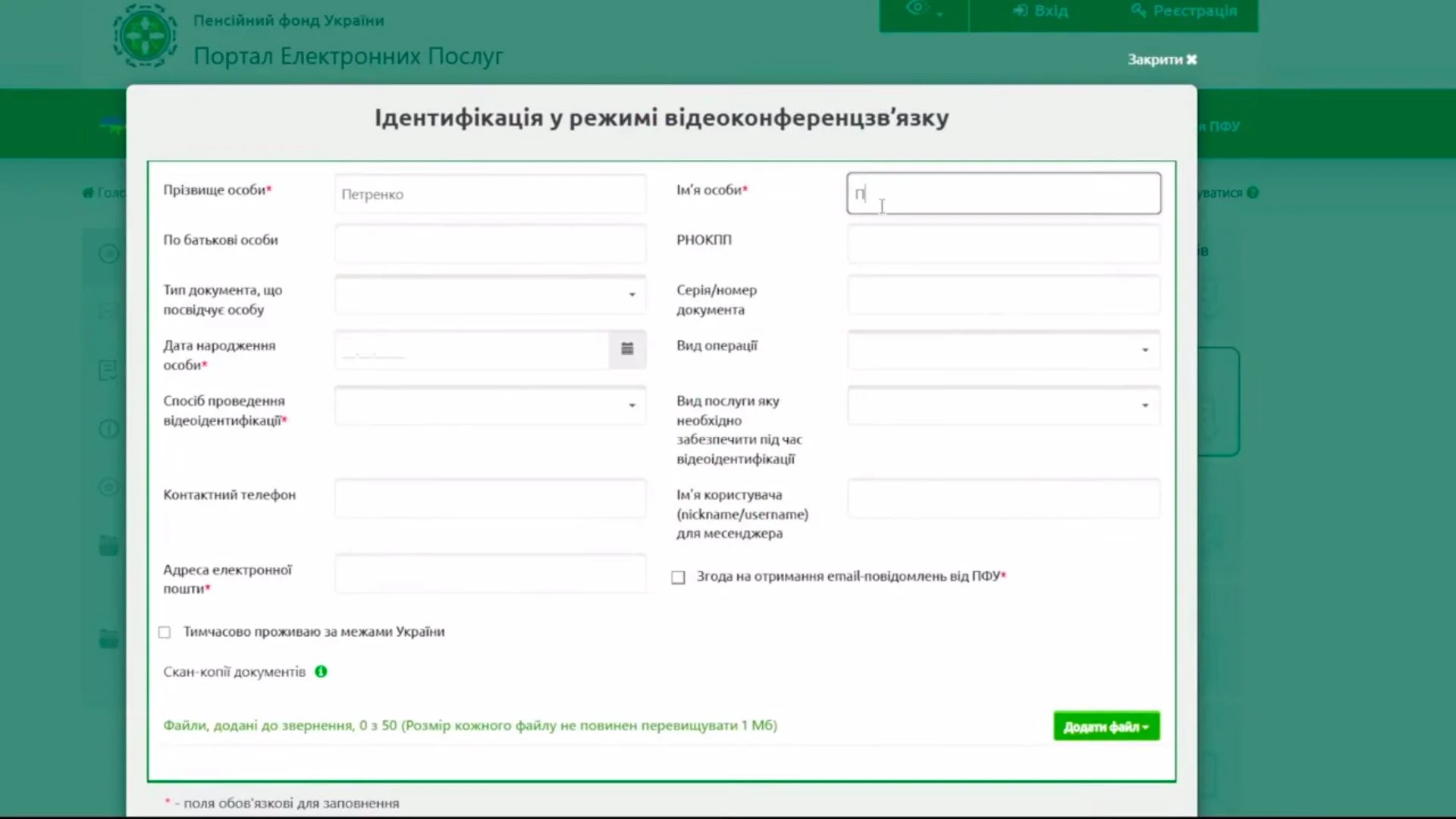 Чтобы зарегистрироваться на видеоидентификацию в Пенсионном фонде Украины, нужно