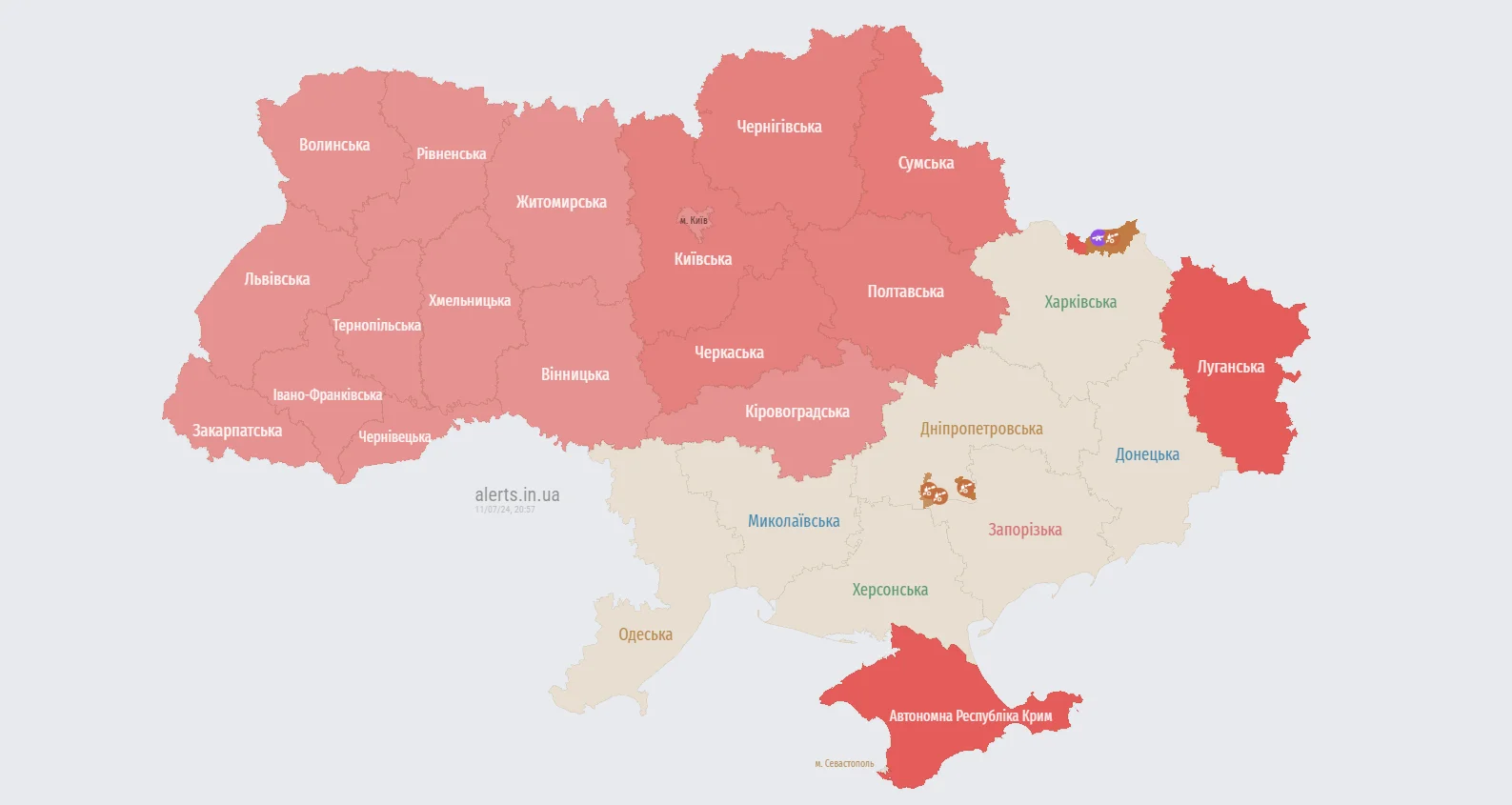 Обновлено в 17:43. В областях начались отбои тревоги.
