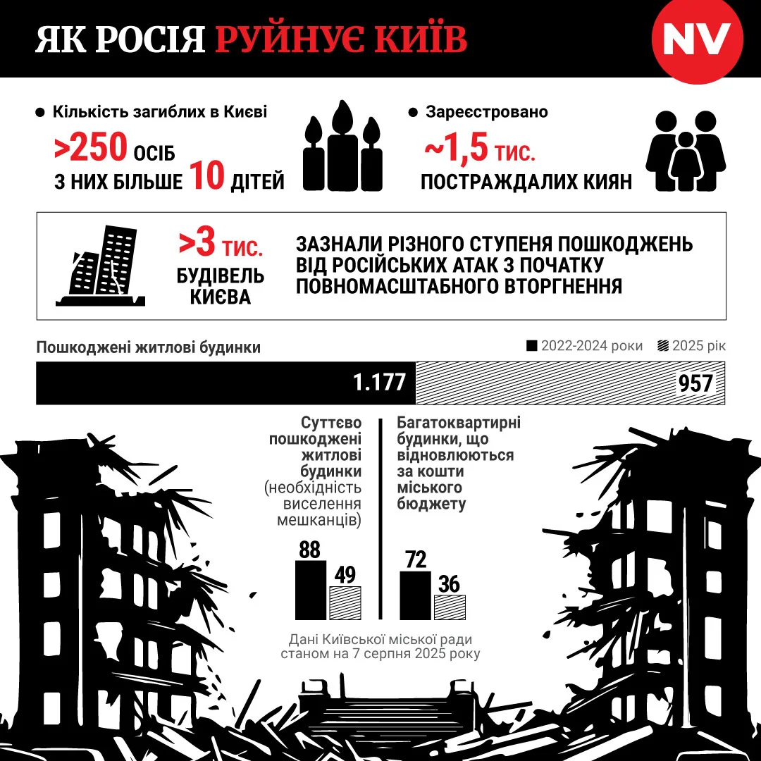 В ночь на 14 ноября Россия массированно атаковала Киев баллистикой, шахедами и крылатыми ракетами. 36 человек пострадали, шесть — погибли. Повреждения были зафиксированы в Днепровском, Подольском, Шевченковском, Соломенском, Голосеевском, Святошинском, Дарницком, Деснянском и Оболонском районах. Пострадали, в частности, жилые дома, больница, дипломатическое представительство, магазины и офисы.