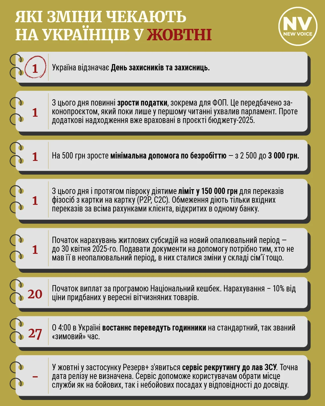 Начало выплат по Нацкешбеку, последний переход на зимнее время и новый сервис в Резерв+: что изменится в Украине в октябре