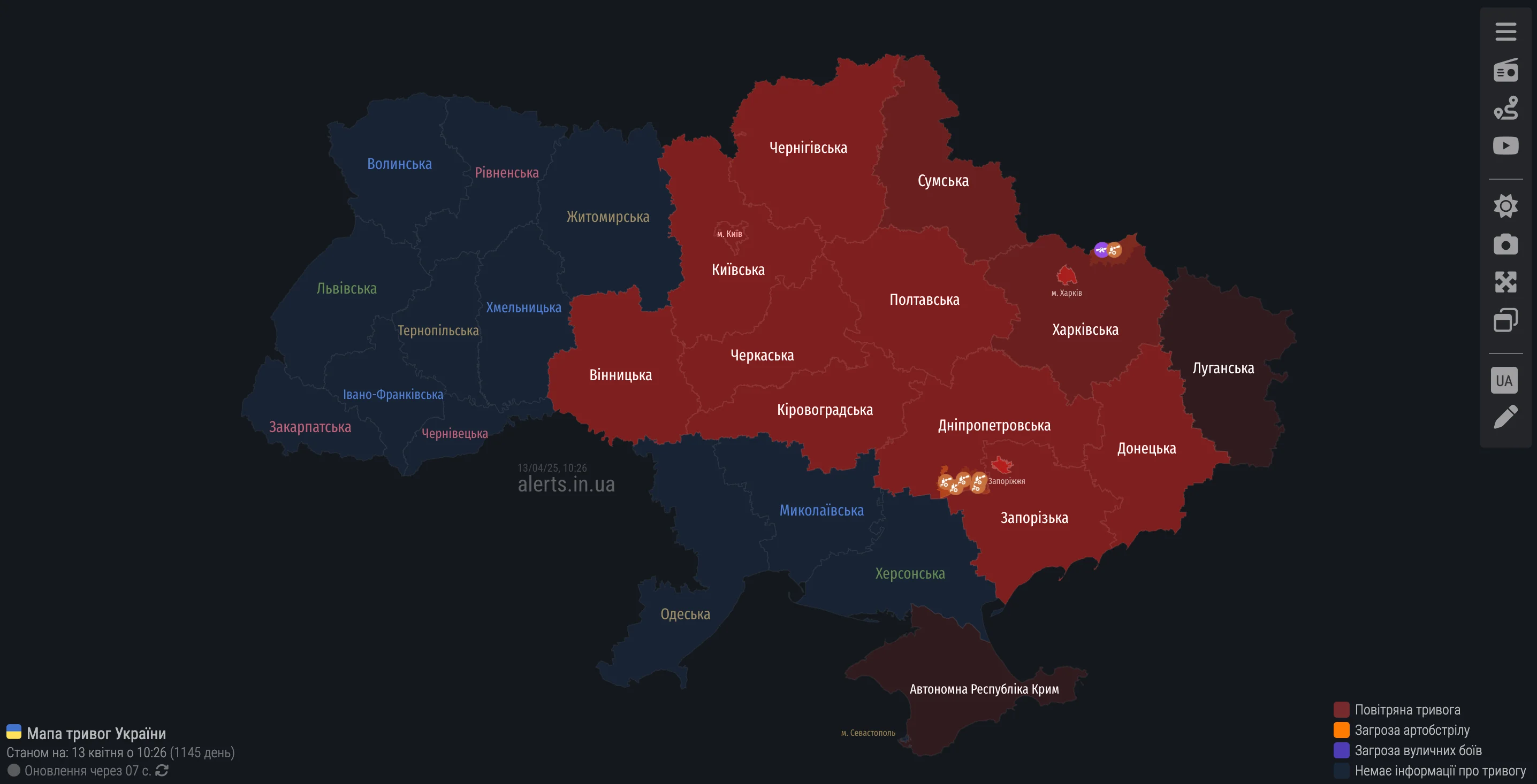 В ночь на 13 апреля (с 20:30 12 апреля) Россия атаковала Украину 55 ударными БпЛА типа Shahed и беспилотниками-имитаторами различных типов.