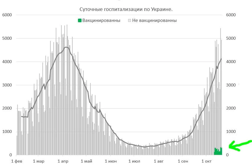 Тем временем статистика госпитализаций в Украине очевидно подтверждает эффективность прививок против COVID-19 — абсолютное большинство людей, попадающих в больницы, не получили ни одной дозы вакцины.