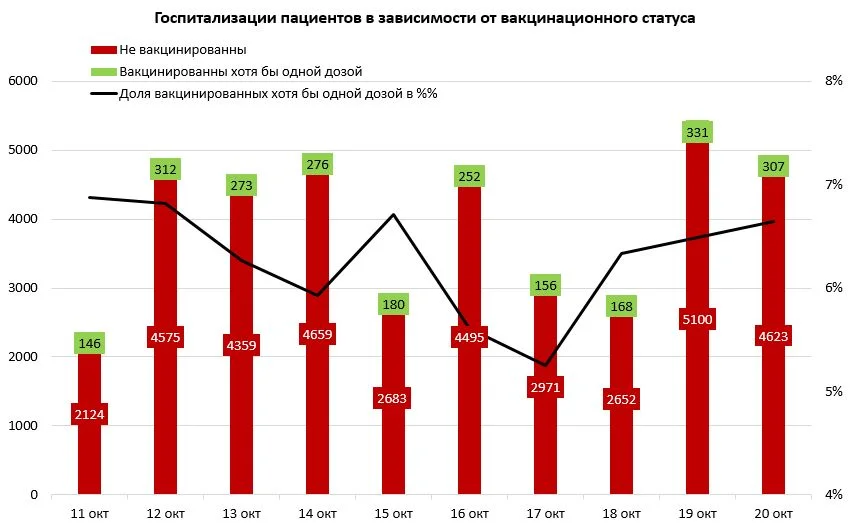 Так, по данным 20 октября за предыдущие сутки было госпитализировано 4 930 пациентов, из которых:
