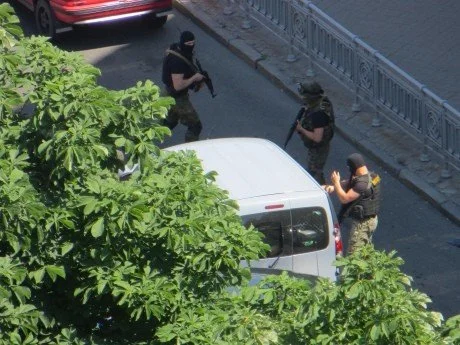 Как сообщает Украинская правда, около 12.35 семь бойцов спецподразделения милиции в полном снаряжении попытались осуществить задержание микроавтобуса серого цвета.