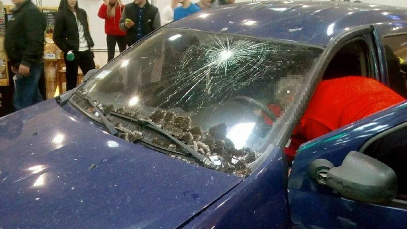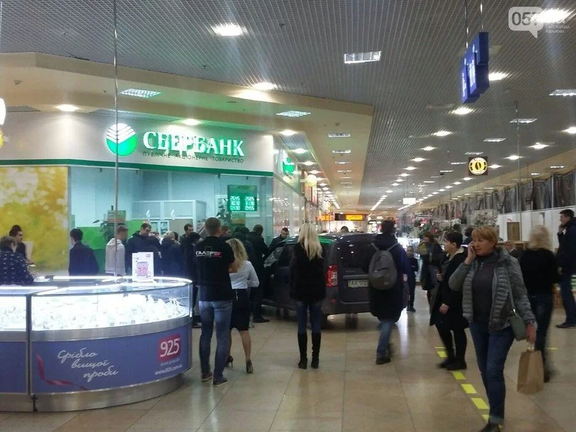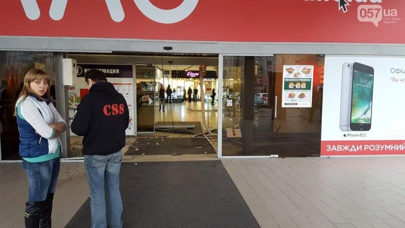 В Харькове водитель протаранил входные двери гипермаркета и прокатился по залу