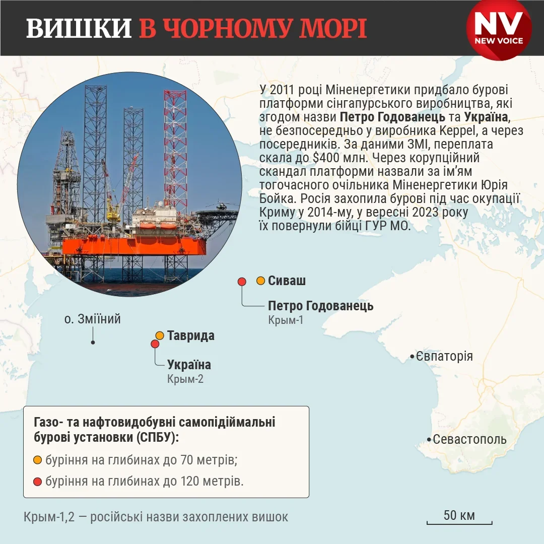 11 сентября 2023 года в ГУР рассказали, что Украина вернула под контроль «вышки Бойко» — буровые газо- и нефтедобывающие платформы у берегов оккупированного Крыма в Черном море. После оккупации полуострова в 2014 году страна-агрессор отбуксировала их ближе к берегам Крыма.