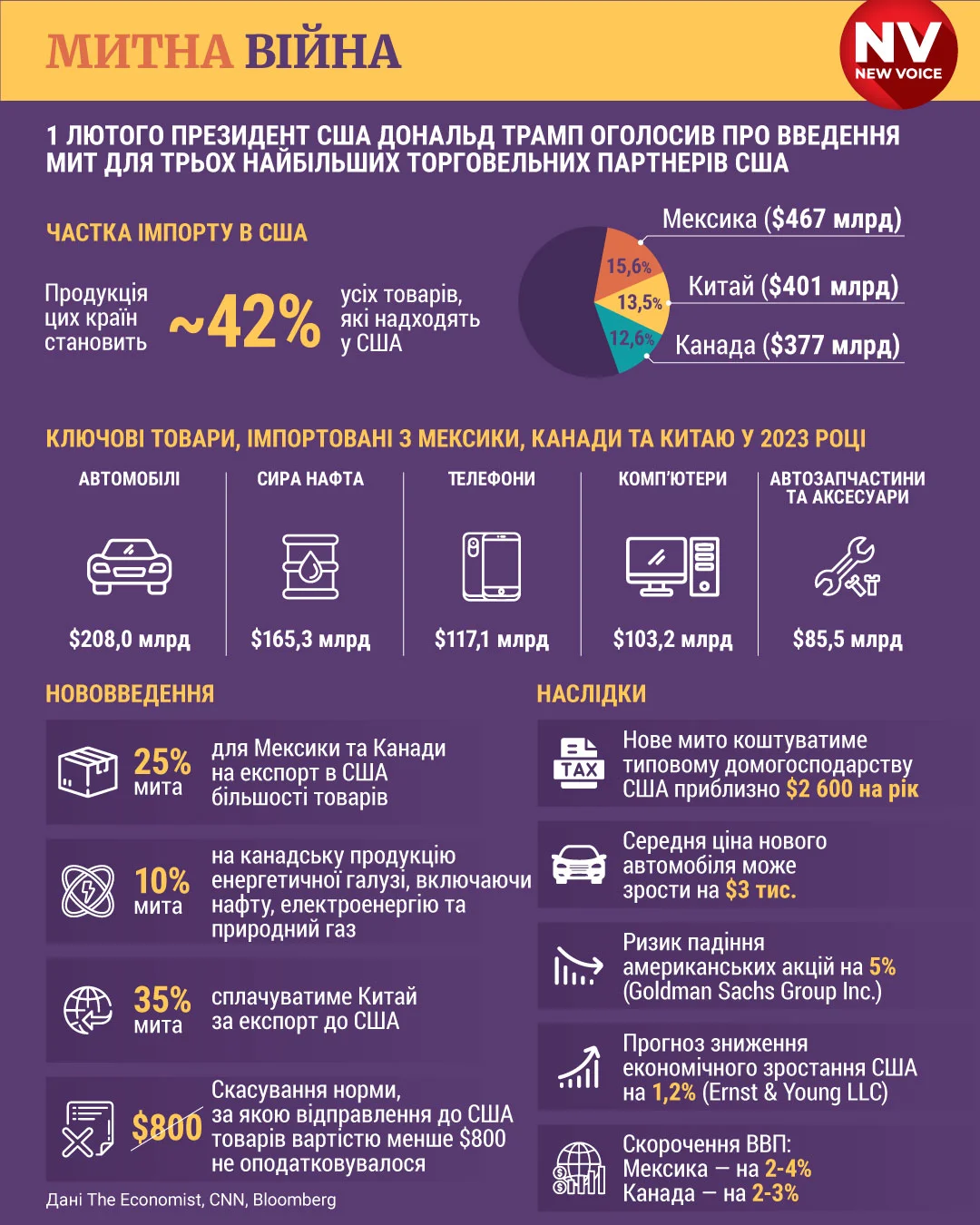 1 февраля президент Трамп объявил, что вводит 25% пошлину на импорт из Канады и Мексики, а также 10% - на товары из Китая. После этого он заявил, что Канада должна стать «нашим заветным 51-м штатом».
