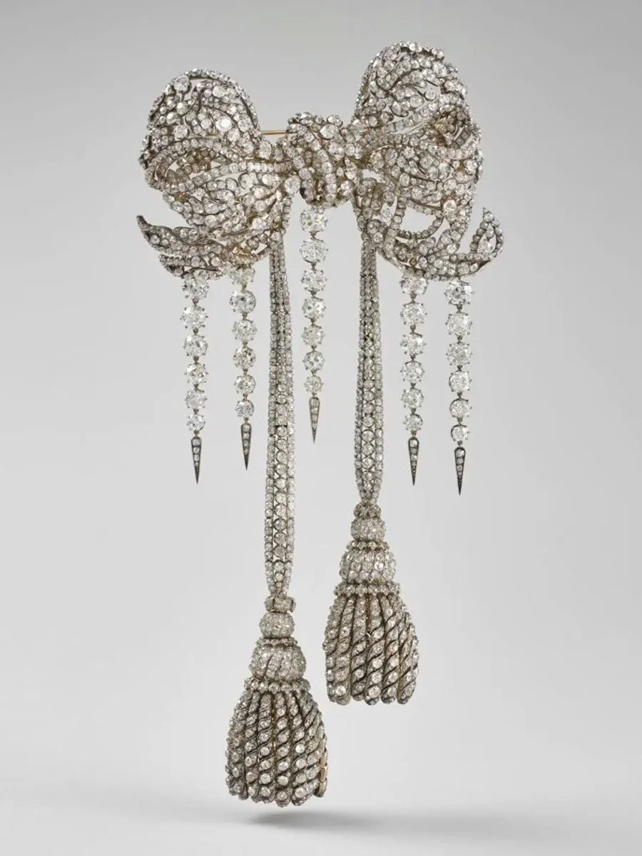 7. Большая корсажная брошь-бант императрицы Евгении. Бант, изготовленный из серебра, золота и бриллиантов между, был частью придворного гардероба Евгении и является одним из самых известных ювелирных изделий Второй империи.