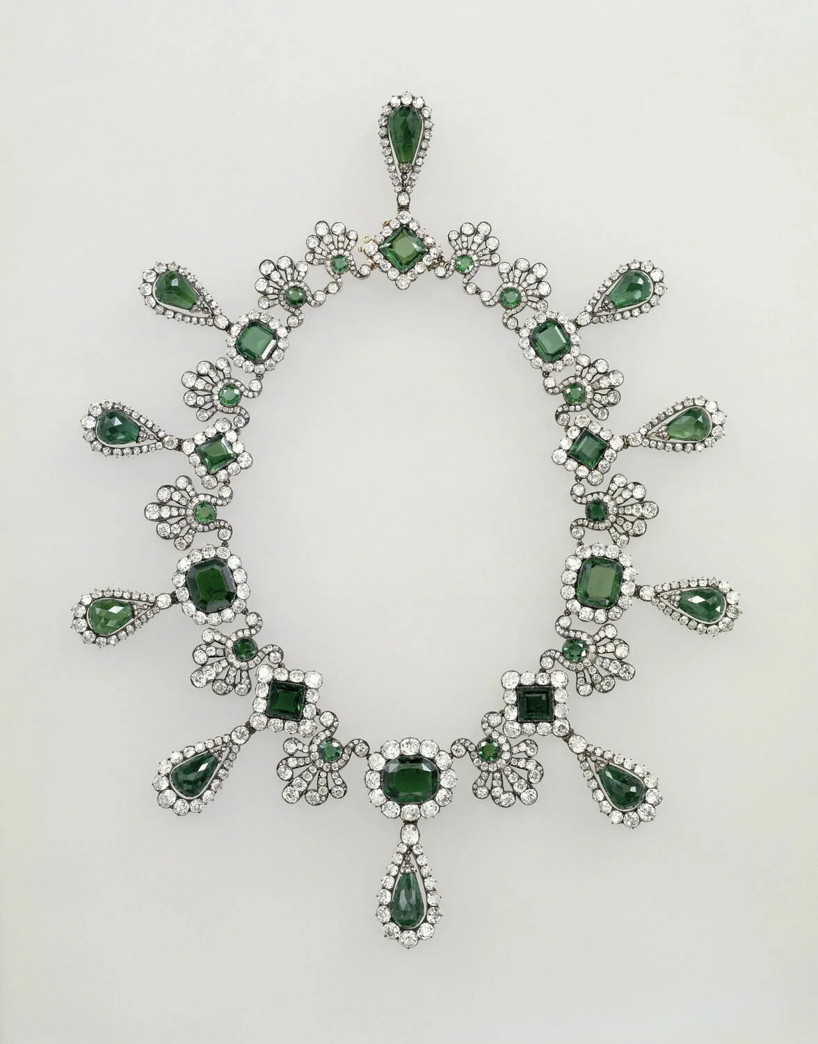 4. Изумрудное колье из набора императрицы Марии Луизы, второй жены Наполеона I, императрицы Франции в 1810—1814 годах. Оно содержит 32 изумруда и 1138 бриллиантов.