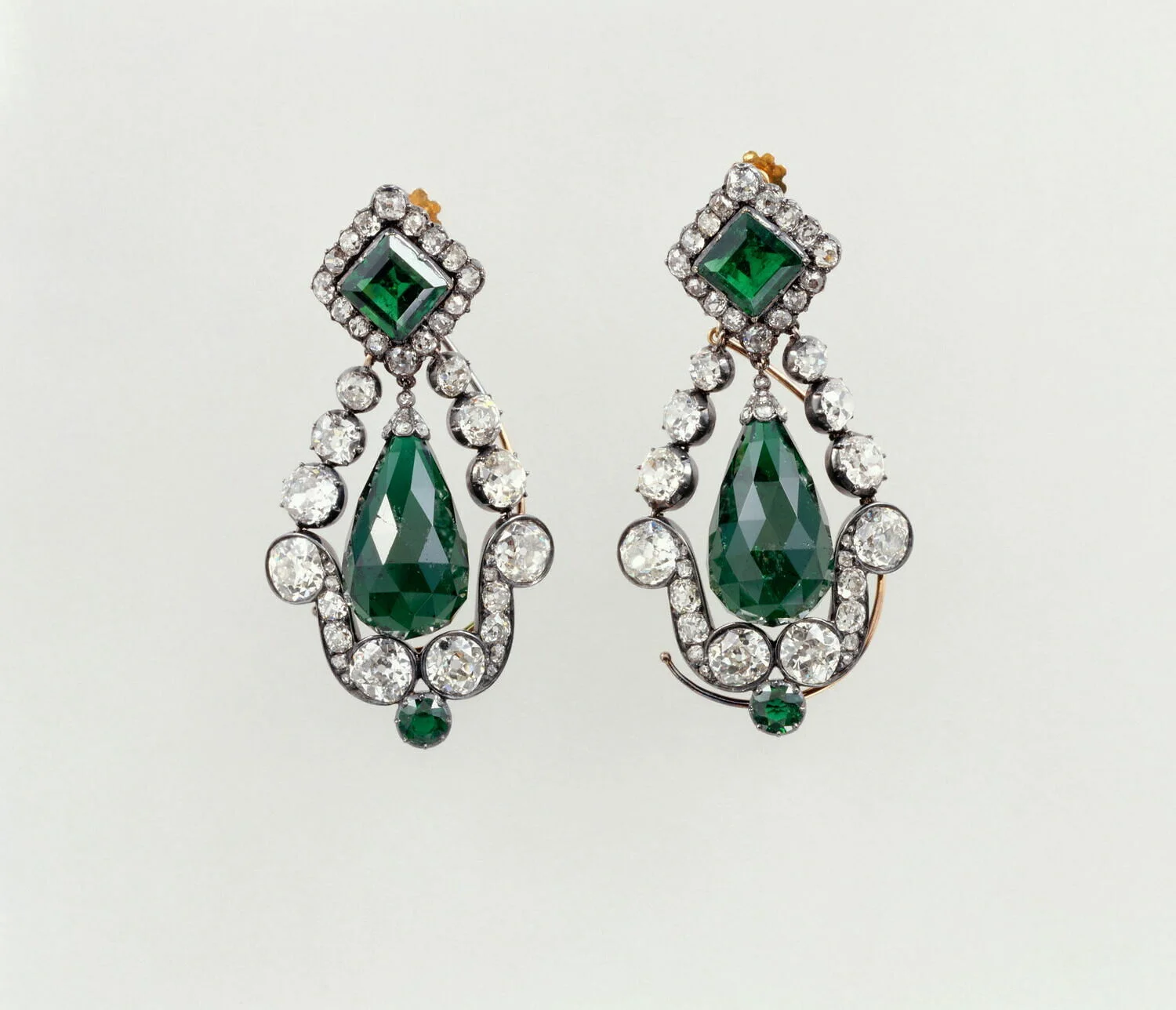5. Пара изумрудных сережек из той же коллекции императрицы Марии Луизы. Вместе с колье этот ансамбль был свадебным подарком Наполеона I его второй жене в марте 1810 года.