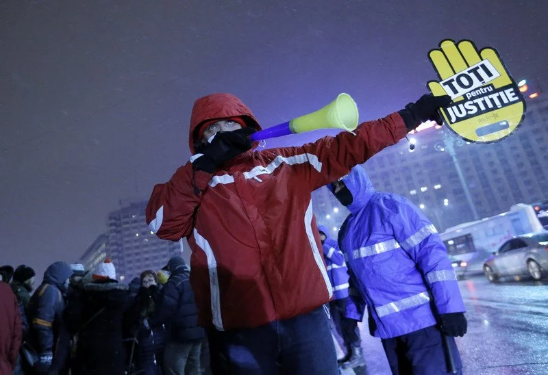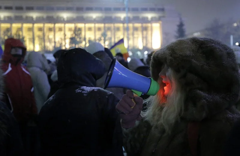 По оценкам СМИ, в одном Бухаресте, несмотря на сильный снегопад, собралось около четырех тысяч демонстрантов В протестных акциях также приняли участие жители трех других крупных городов.