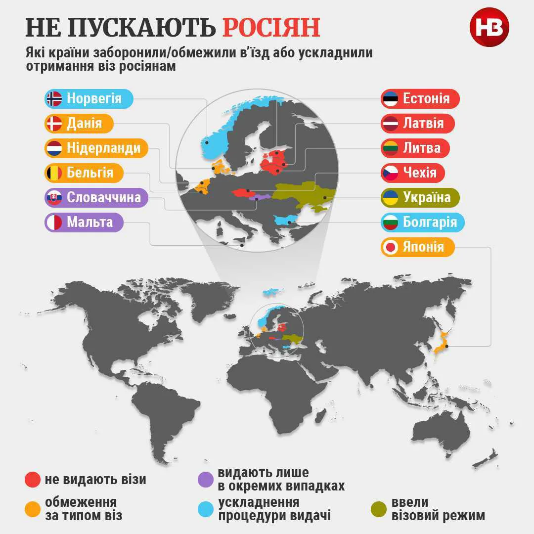 Идея полного запрета на въезд в западные страны для россиян находит все больше сторонников: помимо Украины, такие призывы озвучивают европейские соседи России. Многие из них уже закрыли границы для граждан РФ.