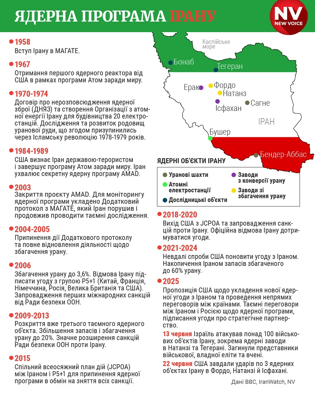 США, страны Европы и Израиль обвиняют Иран в том, что его ядерная программа используется для сокрытия намерений создать ядерное оружие. В то же время в Тегеране настаивают, что программа носит исключительно мирный характер.
